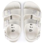The BIRKENSTOCK Milano – a classic back-strap sandal with functional style for kids. Modeled on the cork original, this back-strap sandal is made from ultra lightweight and highly flexible EVA. These sandals are shock absorbing, waterproof, and skin-friendly. Wear them at the beach, in the backyard, or by the pool. Sandals for all-day play!