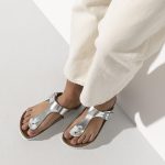 Eyecatching. The Gizeh sandal dresses for RSVP season in metallic leather. Outfitted with a soft footbed, featuring an extra layer of cushioning for last-to-leave support.