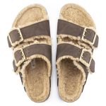 The legendary two-strap design from BIRKENSTOCK – the Arizona. This modern version features a shearling lining and is complemented by brass buckles. This style featues a grip sole, a cushioning midsole made from EVA and an outsole made from genuine rubber. The upper is made from high-quality, soft nubuck leather.