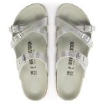 The incredibly elegant Franca sandal – designed with slim, stylish crisscrossed straps. Featuring an impressive combination of design and wearability for all day comfort. This version features an iridescent, silky sheen with multi-colored shimmer and is made of vegan materials. The upper is made from skin-friendly microfiber.
